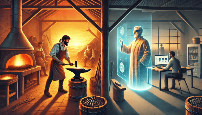 In medieval guilds, apprenticeships were built around clear roles and immersive, hands-on learning. Young apprentices lived and worked alongside a master craftsman, hammering iron and honing skills through the daily grind—learning by doing.