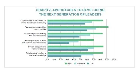 The involvement of the new leaders’ direct manager also is critical to leadership development success. The survey found that current leaders of high-performing organizations are more likely to document critical processes and coach and support emerging leaders.