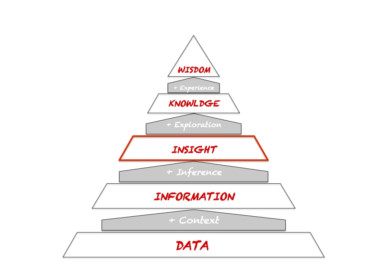Today, many organizations find themselves confronting alarming situations like the one Sully faced. In a world where disruptive technologies disrupt existing industries in the blink of an eye and competitive shifts can render advantage obsolete, companies find themselves drowning in an ever-increasing deluge of data, seemingly devoid of wisdom on how to take decisive action because, unlike Sully, they have not learned how to operate at the Insight level of the Wisdom Hierarchy (see graphic below).