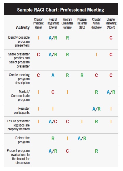 - Too many chiefs and no one doing the work: You see multiple As and no Rs horizontally across the chart for each activity.