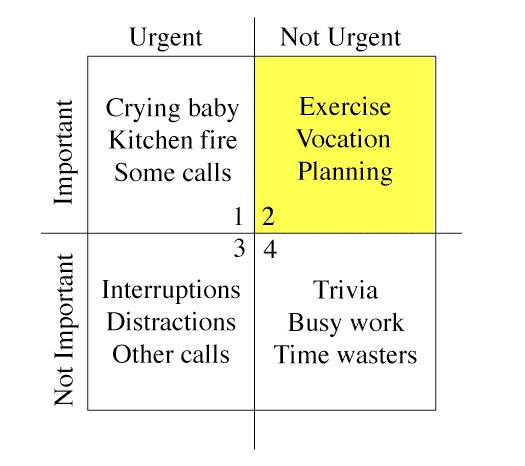 First, a bare-bones time management segment is essential. If the trainees are familiar with Covey’s Urgent/Important 2×2 table (see graphic at below), language can be accommodated. Typically, training developmental activities fall into the “not urgent but important” category. This category includes items that are important but do not necessarily require immediate attention and need to be planned for. This quadrant is highlighted because Covey emphasized this is the quadrant we should focus on for long-term achievement of goals. Some brief attention is needed so T3 trainees shift developmental activities to the “urgent and important” category or expand time for “non-urgent but important” activities. One or both of these are necessary to get beyond current procrastination or temporal barriers that prohibit better quality training. The important thing here is to provide a catalyst to shift from the status quo.