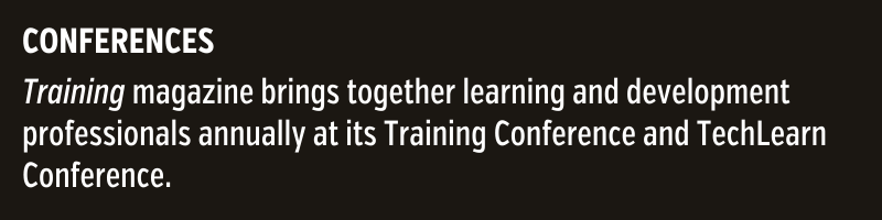 Thank you for visiting Training magazine at the Adobe Learning Summit in Las Vegas! Training magazine provides a roadmap to excellence for training, learning, and talent professionals through its print and digital magazine, two conferences, online courses, webinars, and multiple awards programs. Check out all these below — including several offers to save!
