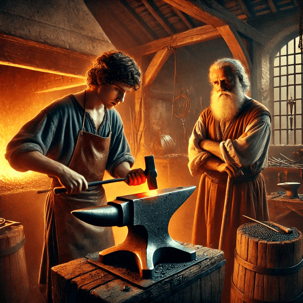 In 14th-century Florence, a young apprentice hammers iron at the local Blacksmiths’ Guild, his master—his coach—guiding every sweaty swing toward mastery.