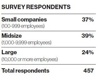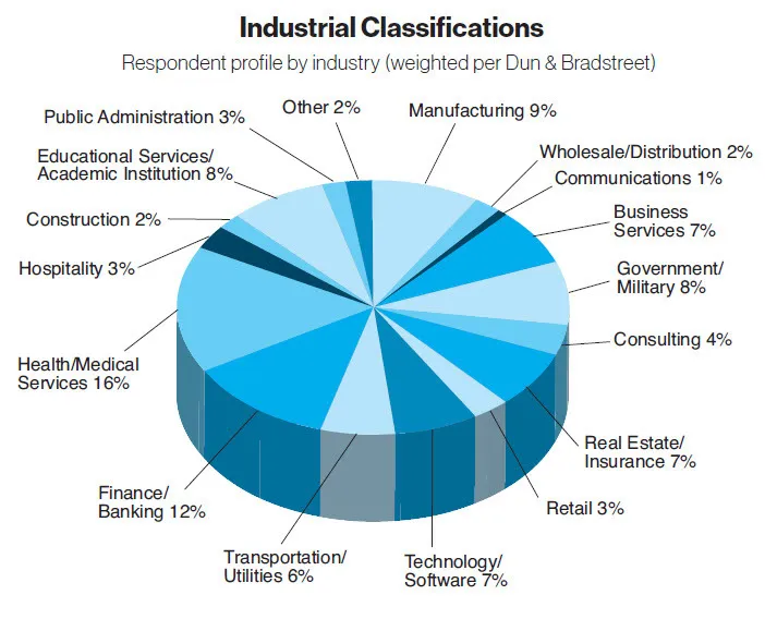 Note that the figures in this report are weighted by company size and industry according to a Dun & Bradstreet database available through Hoovers of U.S. companies. Since small companies dominate the U.S. market, in terms of sheer numbers, these organizations receive a heavier weighting, so that the data accurately reflects the U.S. market.