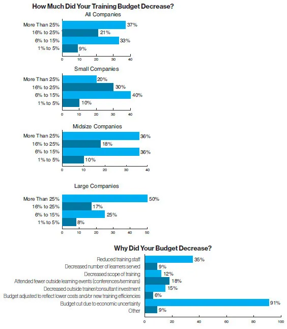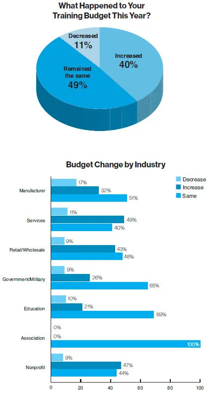 - Decreased outside trainer/consultant investment (15 percent vs. 10 percent last year)